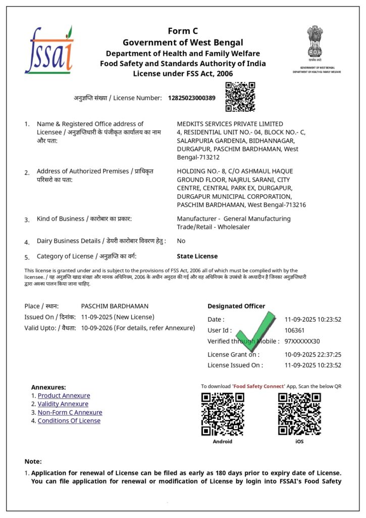 Registered under FSSAI, ensuring product compliance with national food safety standards.